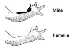 Un dimorphisme sexuel est visible surtout pendant la période de reproduction avec l’apparition de « callosités nuptiales » noirâtres sur le pouce des avant-bras du mâle. Un second caractère, indépendant de la saison, surtout visible à la loupe, est la présence de petites épines noires kératinisées sur les verrucosités dorsales, qui existent chez les femelles et chez les mâles mais qui sont beaucoup plus saillantes chez ces derniers (ACEMAV coll., 2003 ; Pichenot, 2008 et Chemin, 2010).